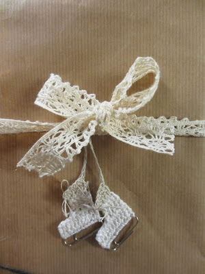 Í DIY-pósti dagsins er meira pakkaskraut eda bara fallegt jólaskraut, en ég ætla ad deila med ykur einfaldri uppskrift af hekludum skautum.